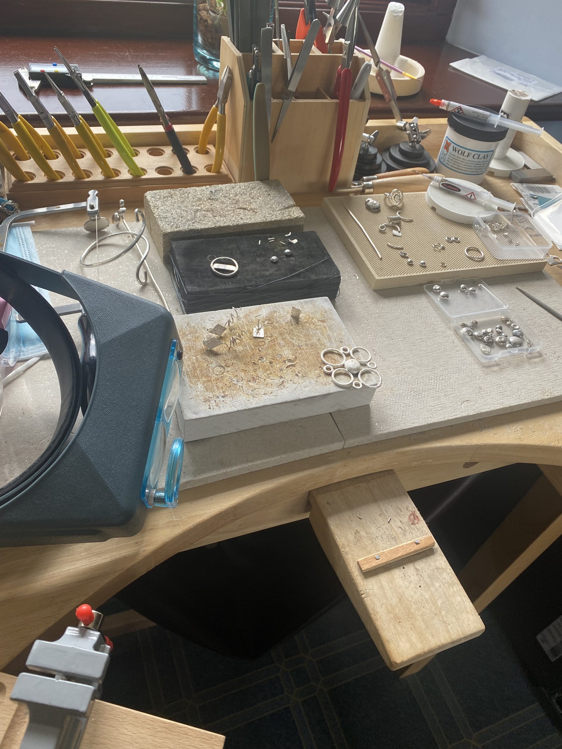 Amanda creates from an inspiration and passion, not by any plans or templates. She starts with her materials and the idea of where she wants to get to and sees where it leads. There are too many tools to list, but suffice to say the workshop is expanding as each month passes. Sometimes, as with everything in life, this can lead to great results or ends up being a ‘let’s recycle and start over’. The sterling silver used in all designs is recycled, this is either directly by Amanda or by purchasing in sheet or wire form through Cookson Gold who use recycled silver in its raw form.