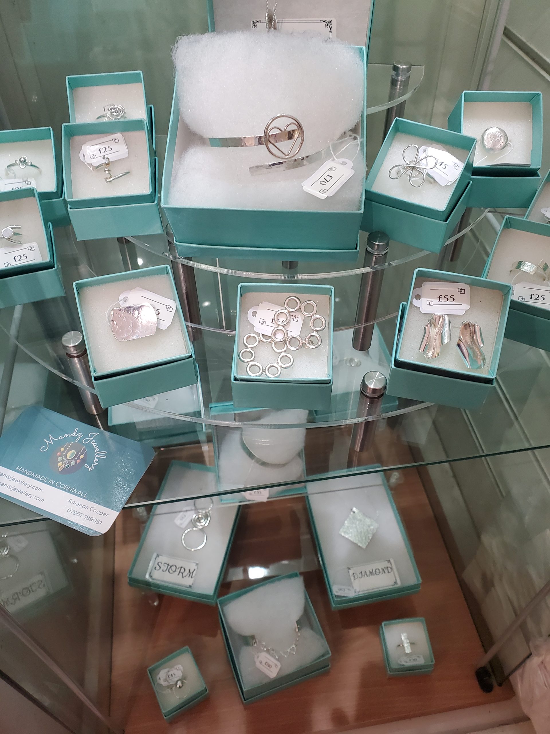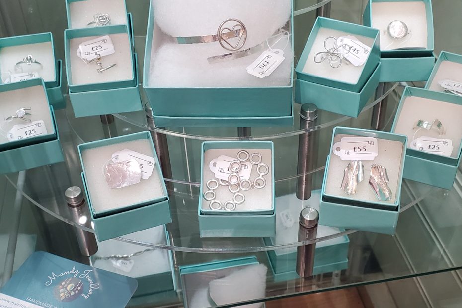 You’ll find Mandz Jewellery just next to the resin artwork, by the till. Everything in the shop handmade with care in Cornwall – pop in to see all that we have to offer.