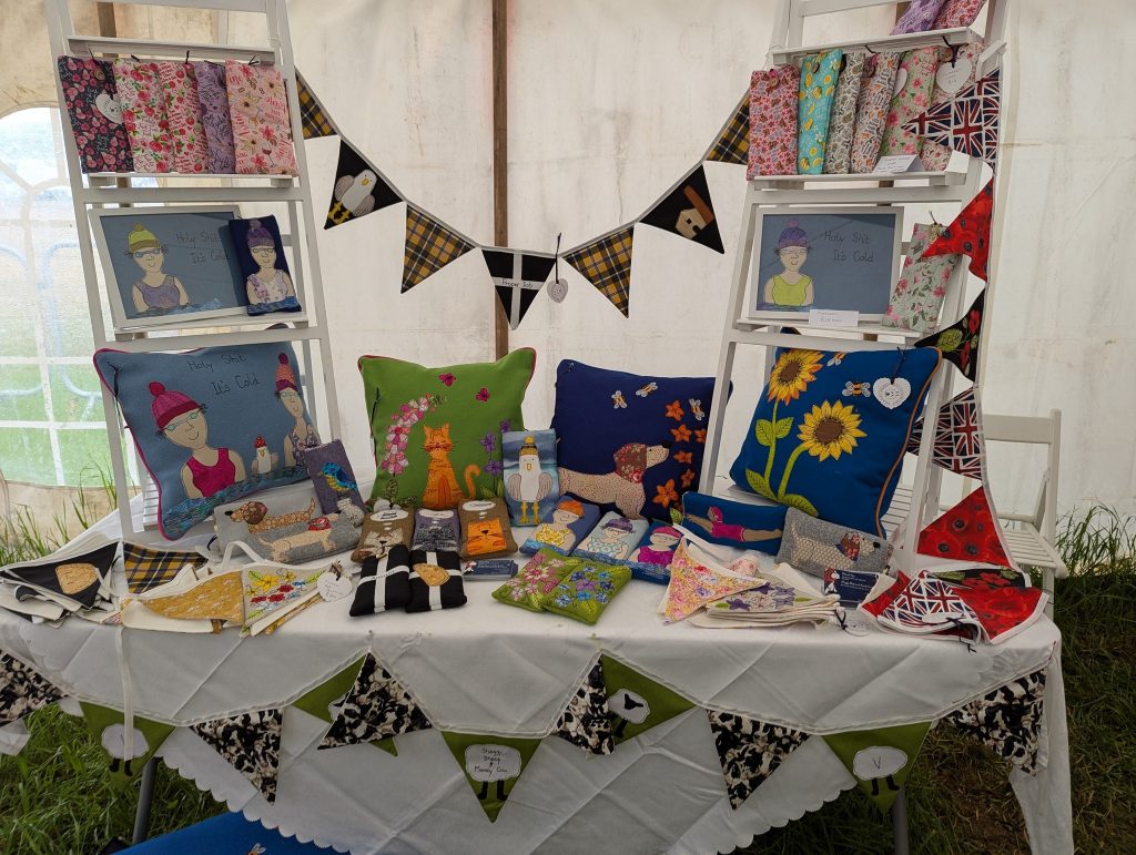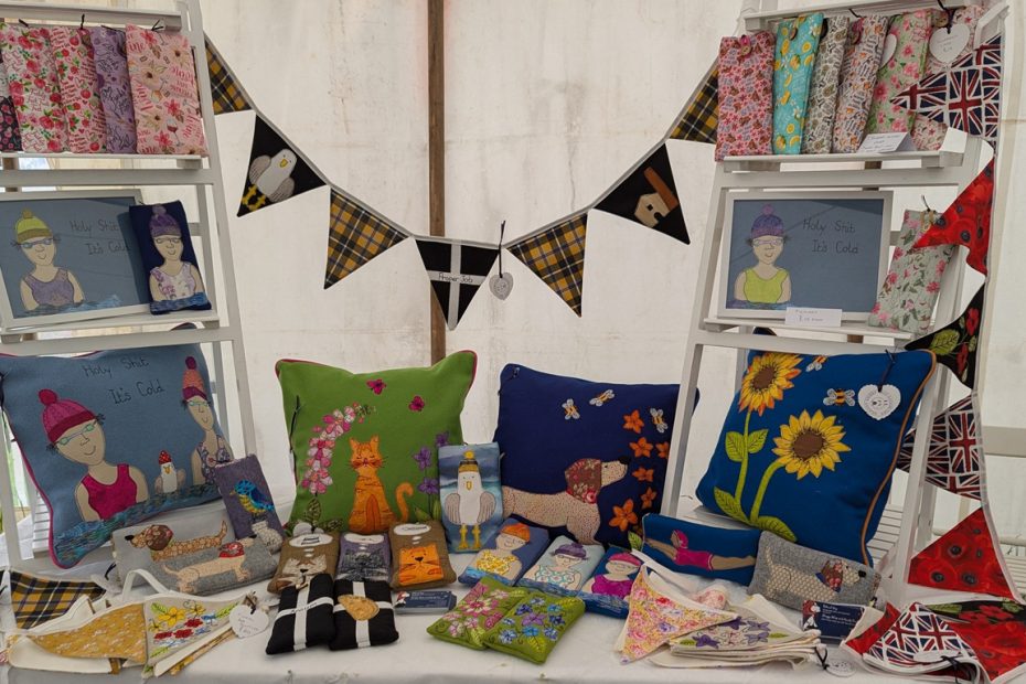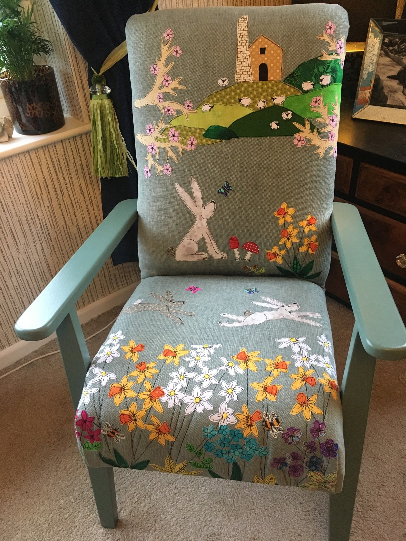 A) I’m Debs and I gave up my full time job as a Horticulture tutor to run my own business. I originally started my own floristry business but later started to upcycle furniture as I had completed an upholstery course at college. I then moved on to making cushions and the free motion embroidery came from there. I work from home so that I can be with my two dogs and I sell my items in shops around Cornwall or at craft fairs.