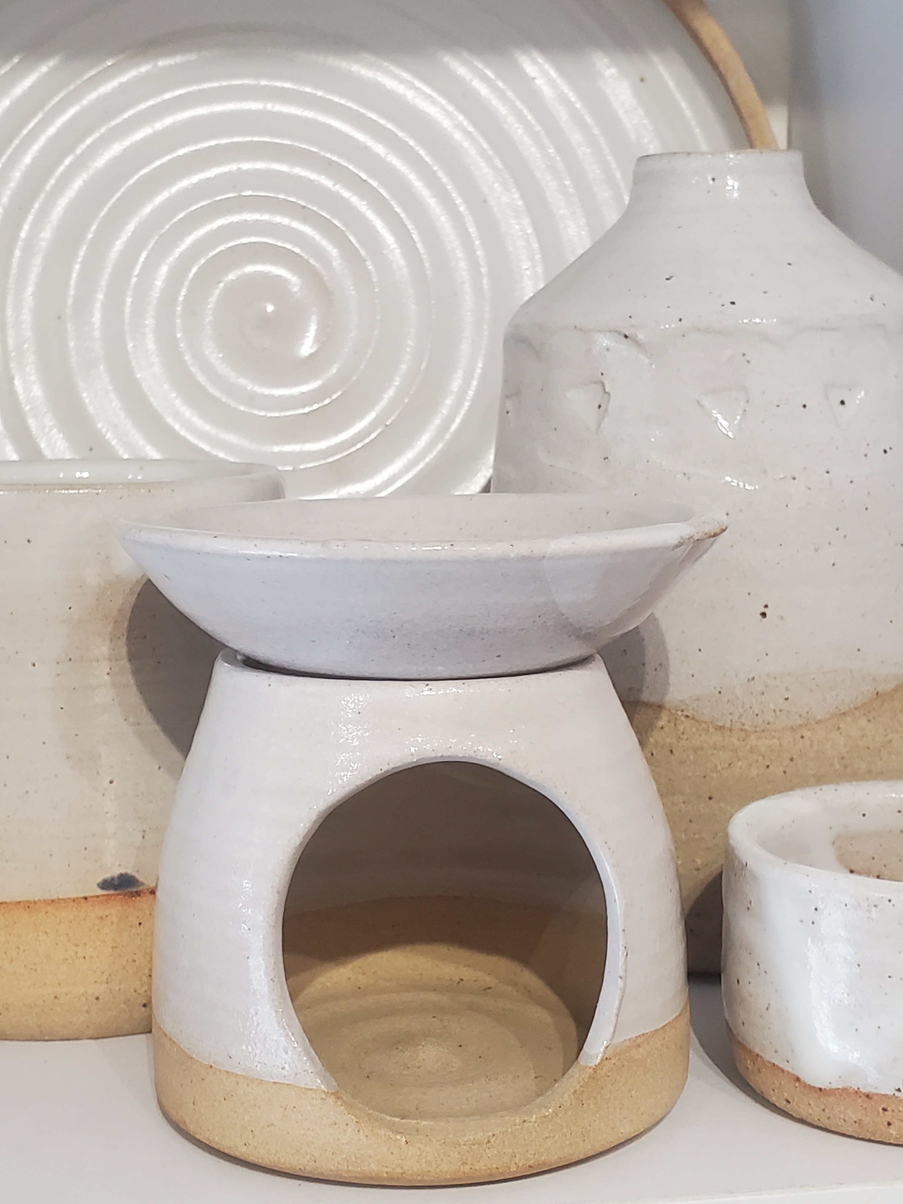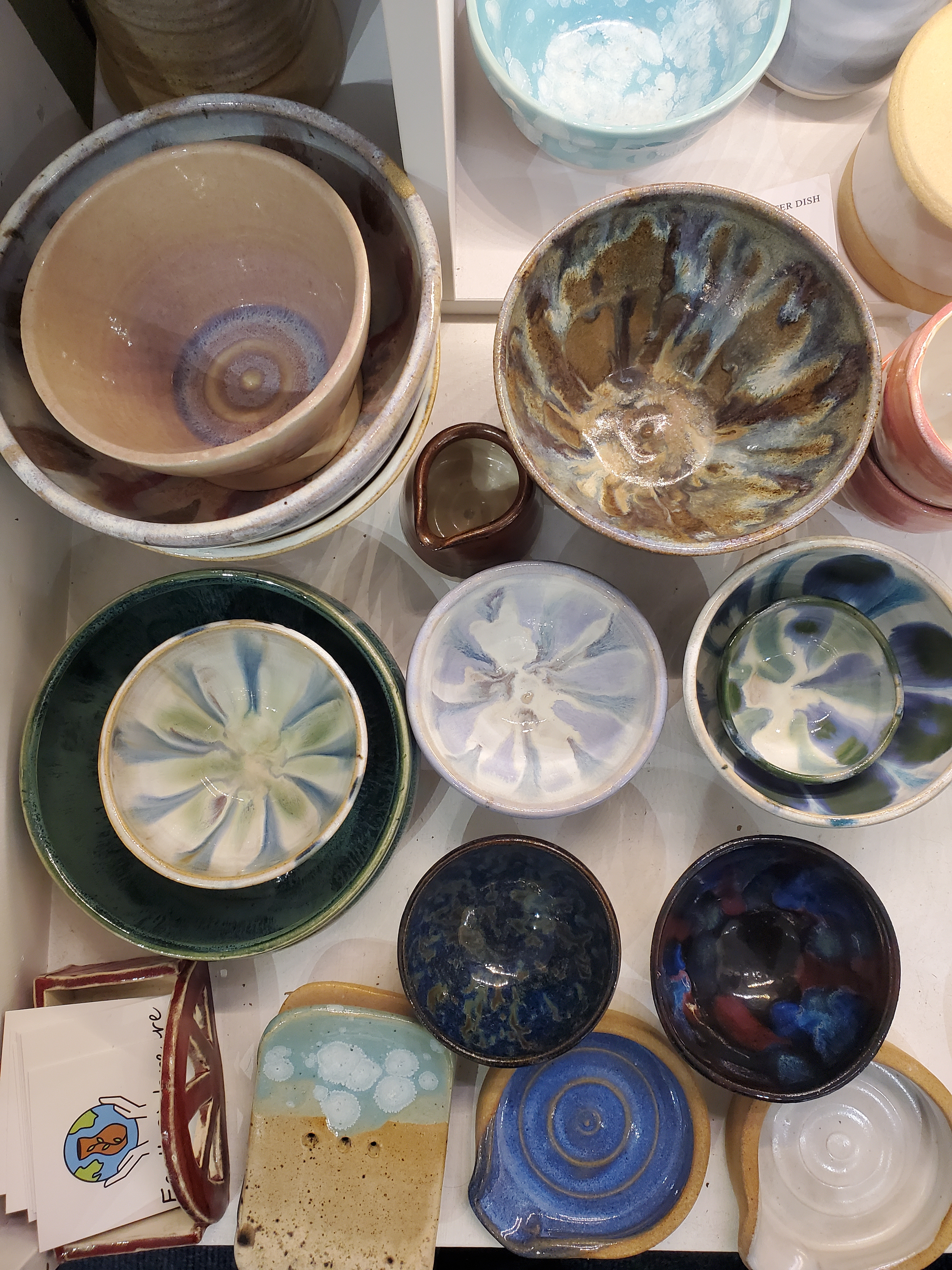All things ceramic – mugs, bowls, spoons and Christmas decorations.