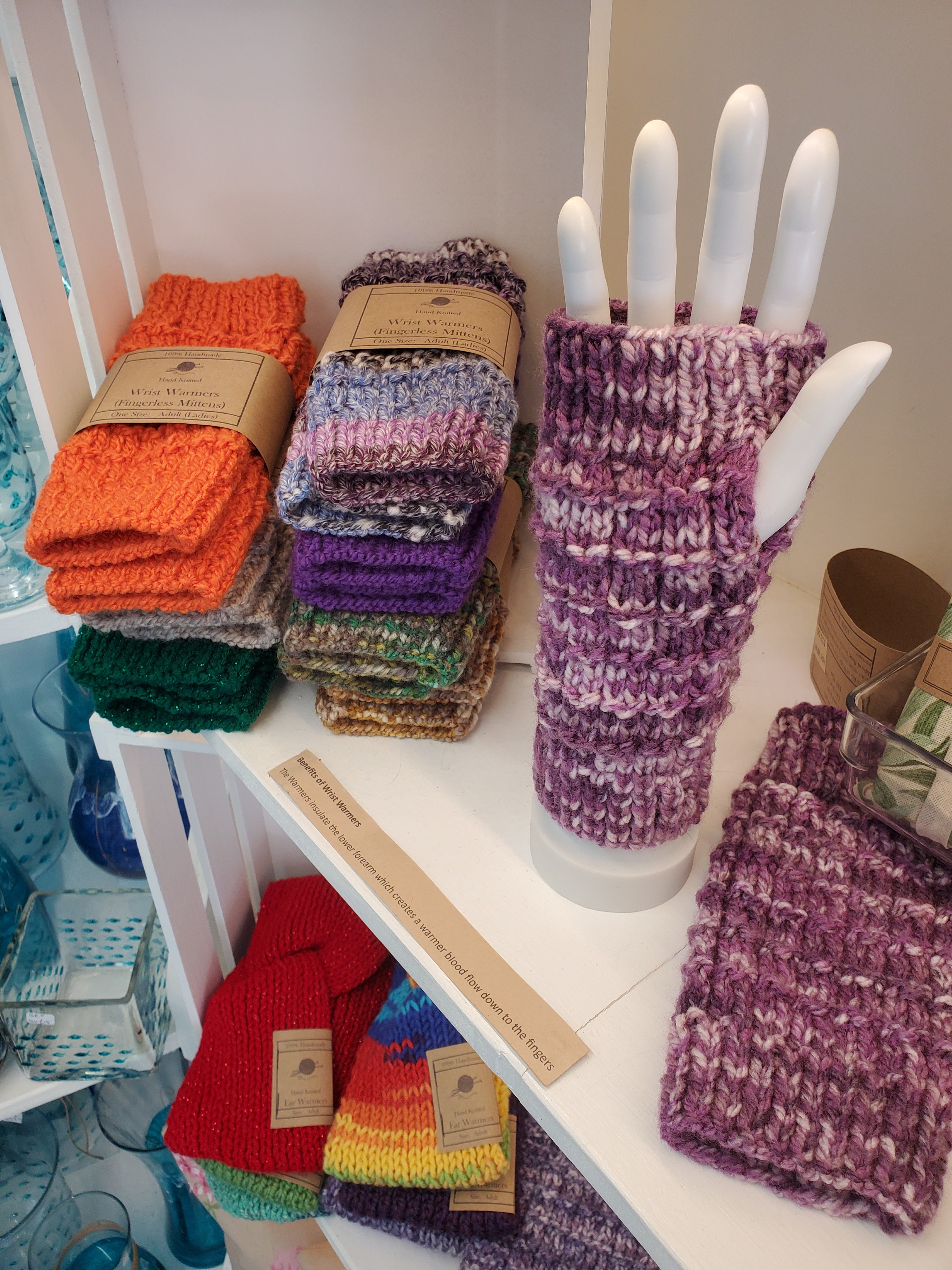 She also enjoys a wide range of other art and crafts including oil and watercolour painting, jewellery, hand bags as well as lamps and mirrors decorated with local driftwood.