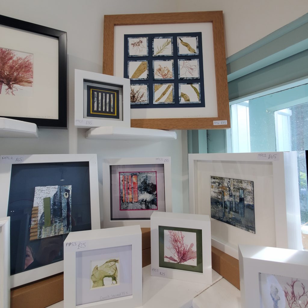 Paintings including miniatures and pebble art featuring the Cornish coast.